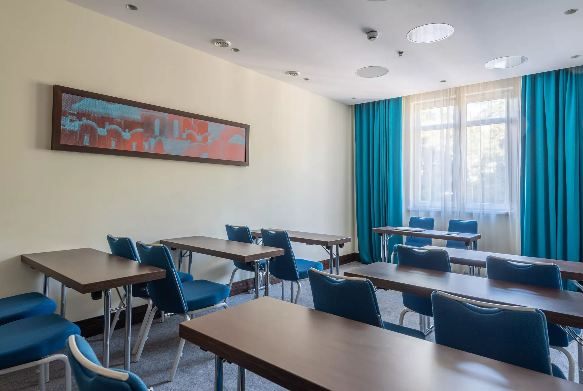 Зал «Африка» – это место, подходящее для конференций, банкетов и деловых переговоров. Мы предоставляем: услуги кейтеринга, флипчарт и маркеры, бесплатный Wi-Fi, аудиовизуальное оборудование, микрофон.