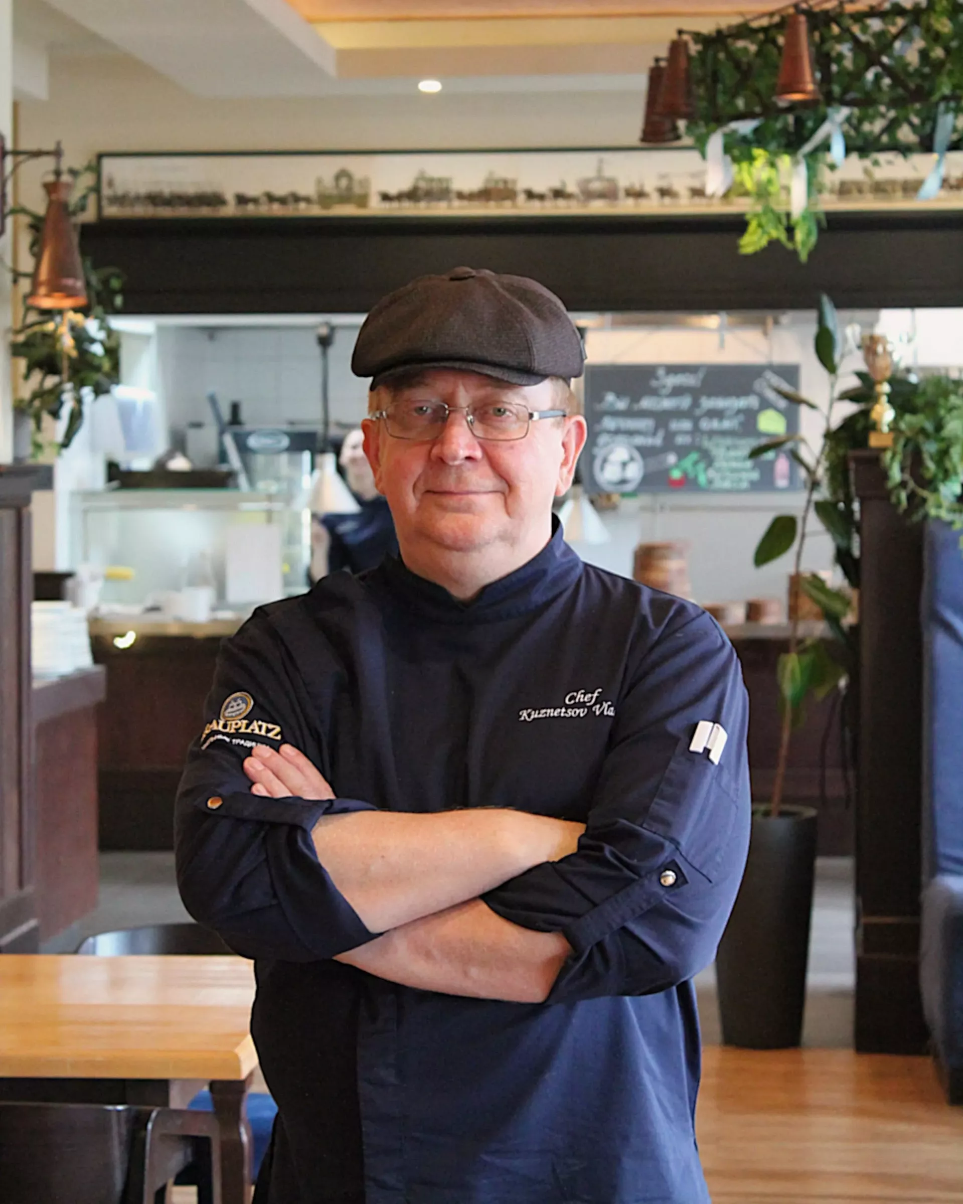 Владимир Кузнецов, шеф-повар отеля, в историческом сердце Сочи проводит смелый кулинарный эксперимент: он ведет диалог между двумя мощными гастрономическими культурами — немецкой и кавказской.